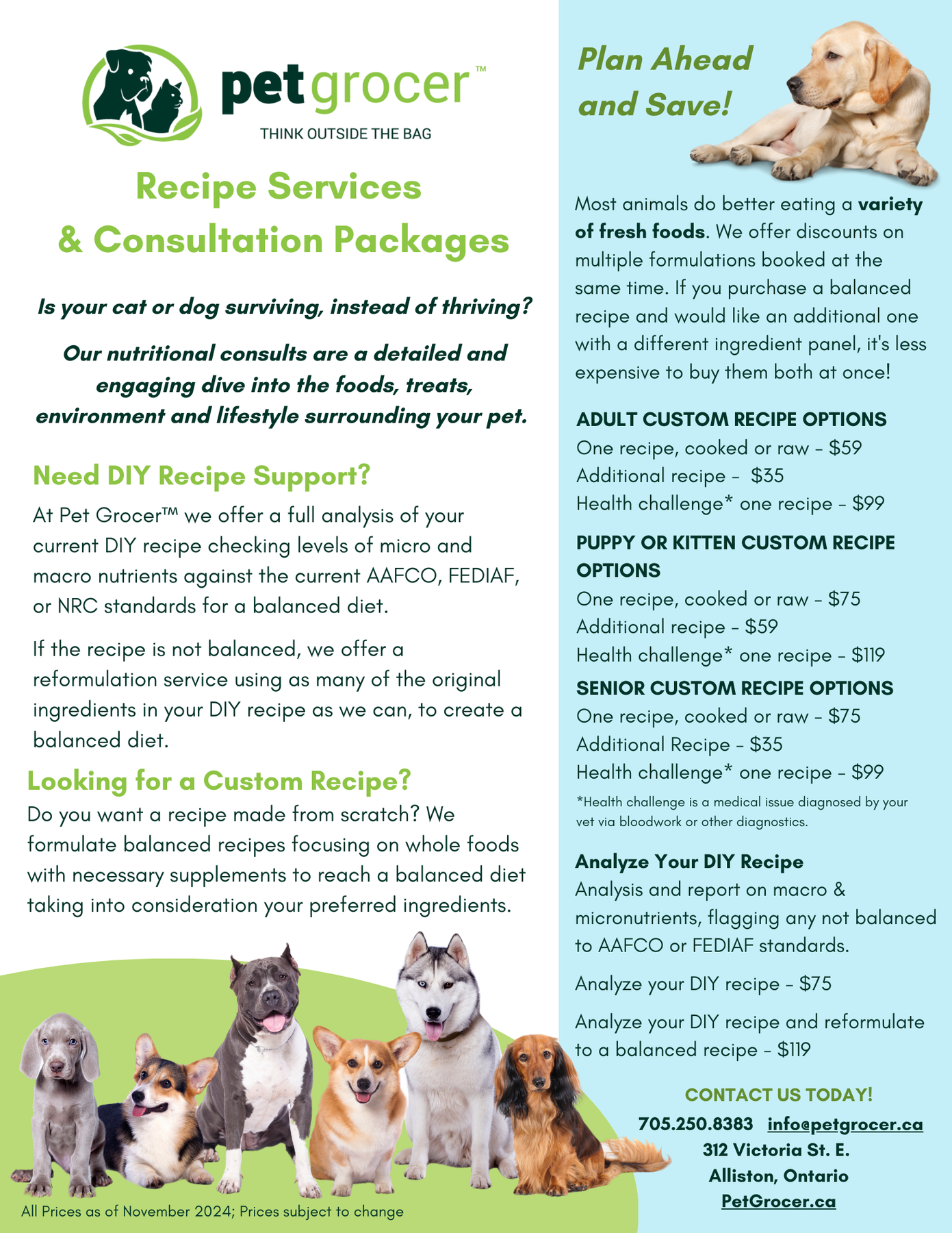 If you are looking for DIY recipes for your growing pet, we offer a la carte recipe services which you can find here. Let us know how we can help you today!