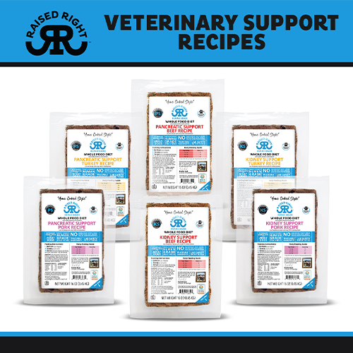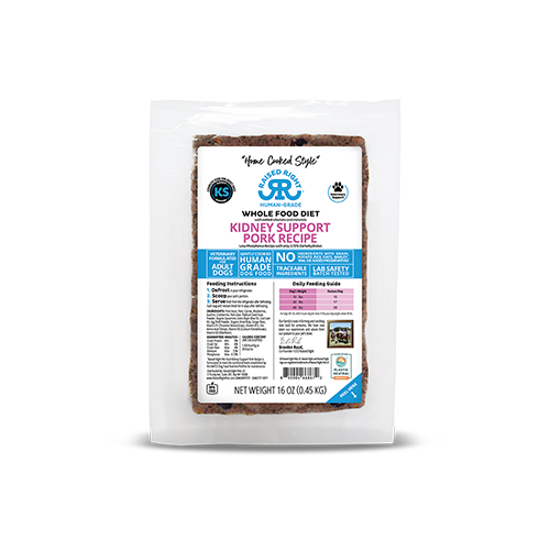 Try Raised Right's Gently Cooked Dog Food - Kidney Support, from the family owned, human-grade pet food company. Developed with top veterinarians Dr. Karen Becker and Dr. Barbara Royal, these recipes offer targeted support for pets dealing with kidney health concerns.