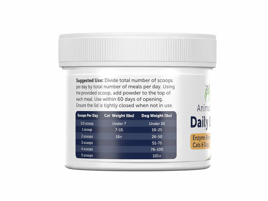 Daily Digest is a full-spectrum blend of digestive enzymes that is scientifically proven to improve the bioavailability of nutrients from your pet’s food. The enzymes in Daily Digest assist in the breakdown of protein, fat, plant fiber, and carbohydrates so that nutrients from your pet’s food are more easily absorbed. Add this picky-eater-friendly powder to each of your pet’s meals for optimal benefits.