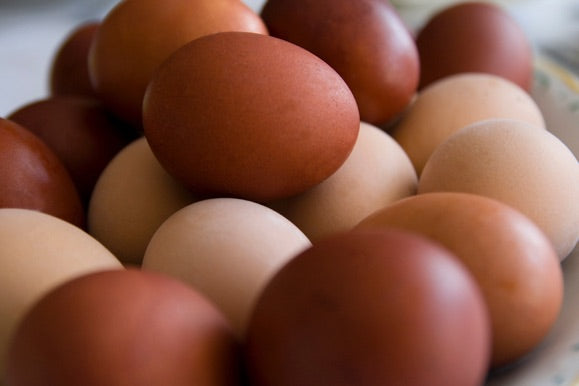 Fresh, free run pastured eggs from our own chickens. This breed of chicken lays brown eggs in a range of colour. Rich yolks and delicious flavour are evident in these locally grown chicken eggs that are raised organically with organic feed, spices and fresh foods. Enjoy yours today!
