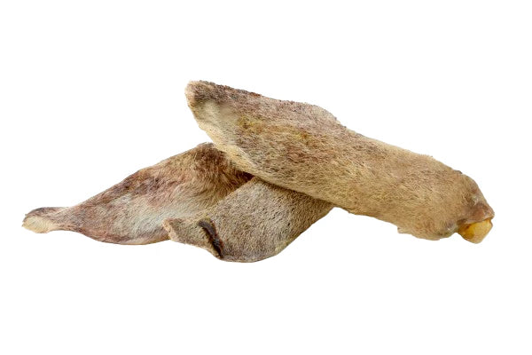 Lamb ears with fur are a natural dog treat. The fur on the ears is a source of fiber and acts as a natural de-wormer, aiding in digestion and cleansing the intestinal tract. Additionally, the fur provides manganese, which is important for joint health. These treats are a good source of protein and can help with dental hygiene by encouraging chewing.